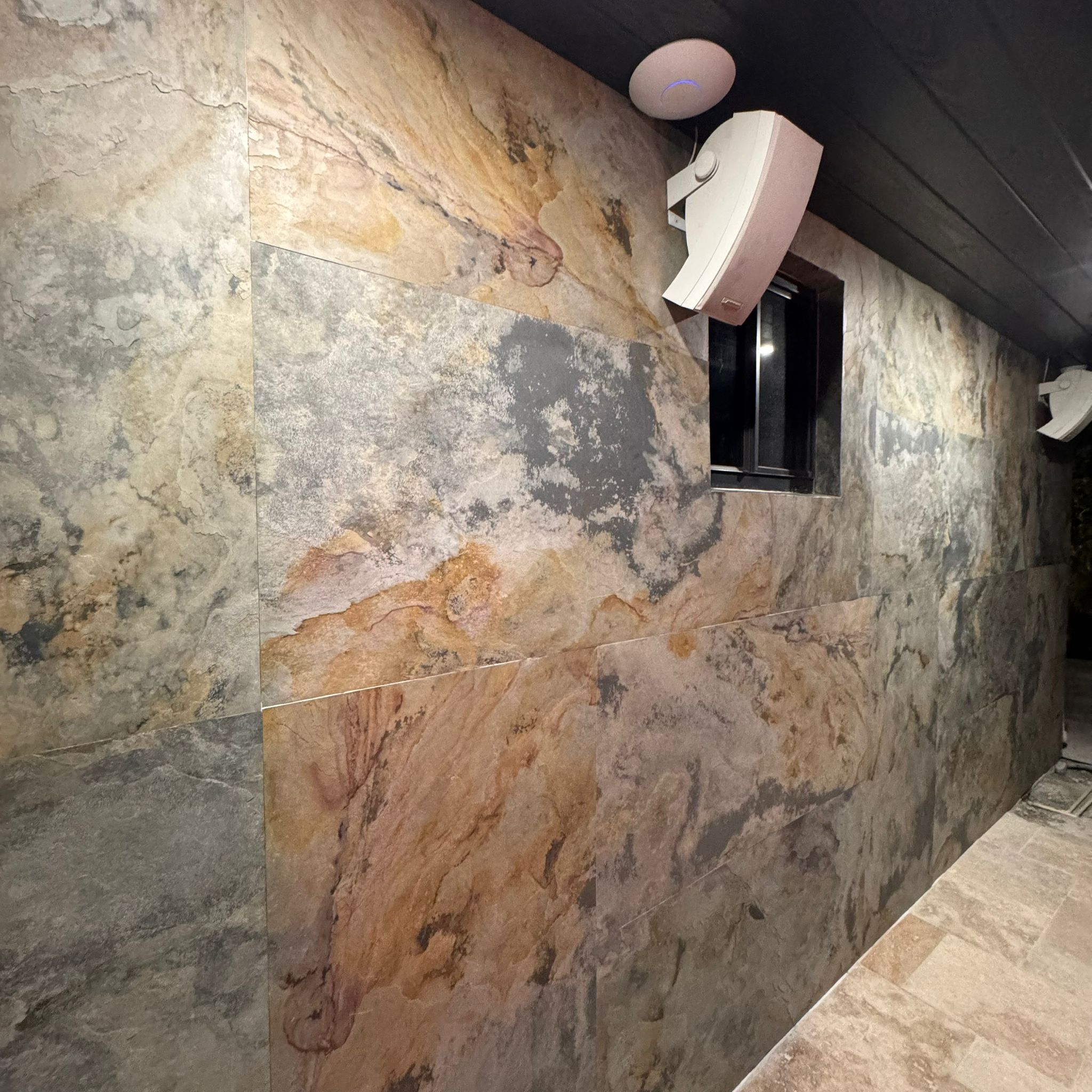 KINGLYSLATE is a perfect choice for both interior and exterior applications. It adapts to round or square columns, bends seamlessly around concave or convex walls, and works beautifully on accent walls, fireplaces, and even shower interiors.